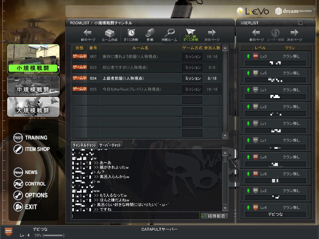 ルーム名に「初心者」とか「ヘタレ」とかついてないと入れません。(ёεё)